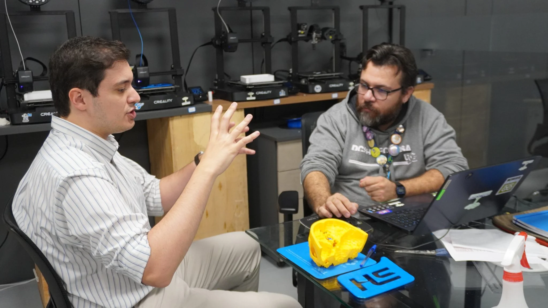 Assim que a demanda chegou ao Espaço Maker do CTP, o vetor dedicado à inovação e prototipagem, o Maker Jhonnathan Ferreira buscou estudar e desenvolver o protótipo necessário. Com os resultados de duas tomografias da paciente, uma simples e outra de alta qualidade, Jhonnathan modelou e imprimiu o protótipo do crânio em menos de uma semana.